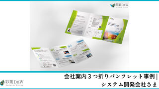 彩葉D&Wにご依頼いただいたデザイン&ライティング事例のご紹介です。今回は、システム開発会社様の事業紹介用の会社案内の3つ折りパンフレットをご依頼いただきました。